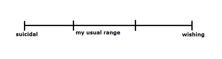 not too long ago i read on another blog where somebody was talking about the difference between being suicidal and wishing you were dead. it’s a very real difference. i realized that for the majority of my life, if i am not  in either of those states, then i am kind of somewhere in the middle.