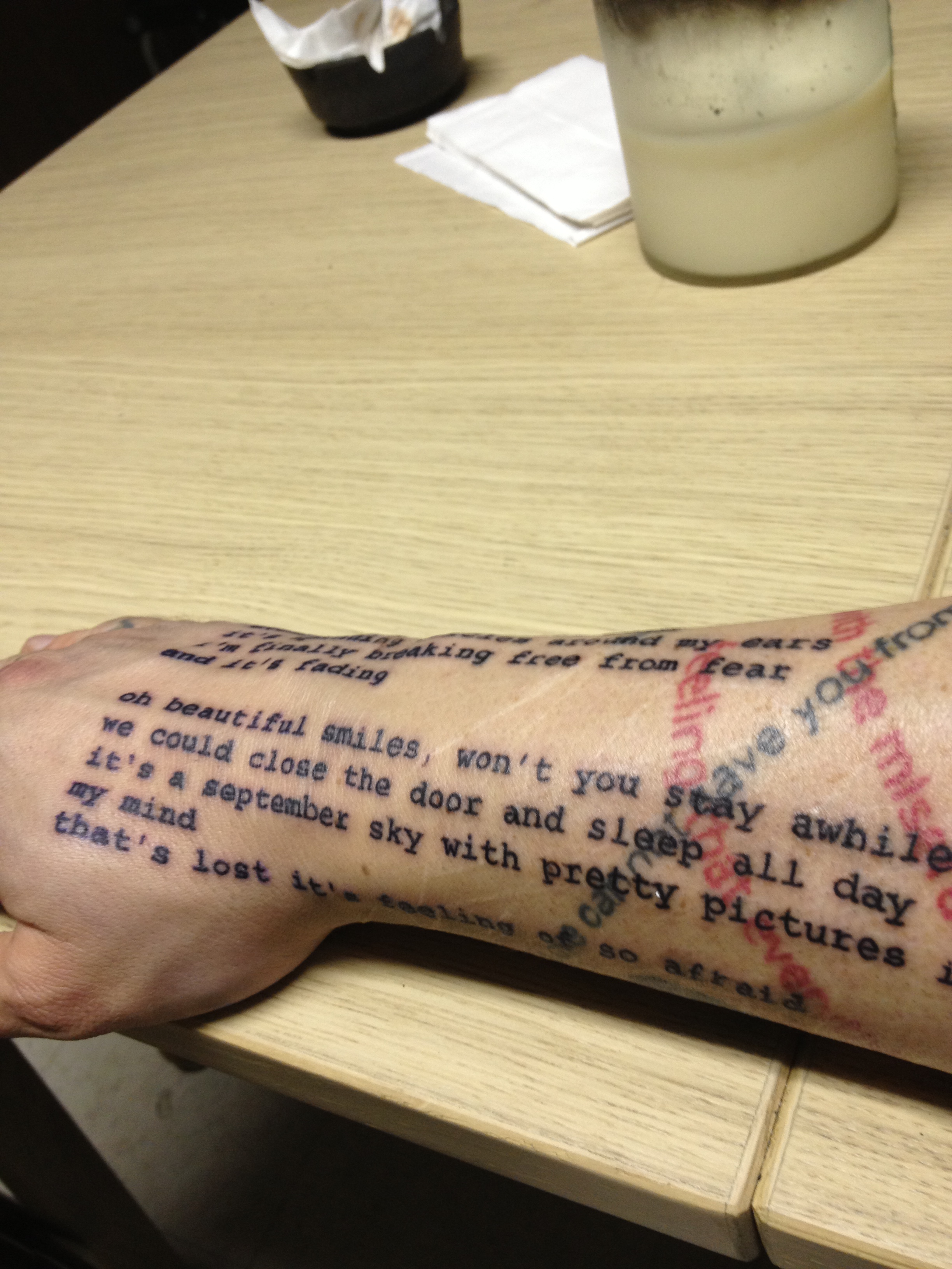 2. Always good to find a post from you in my reader. Hang in there, love the tattoo. 🙂
